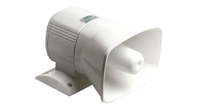 Altavoz de alto rendimiento, difusor ABS rectangular, motor reemplazable, protector para exterior en color blanco. Base plana para montaje en techo de vehículo.