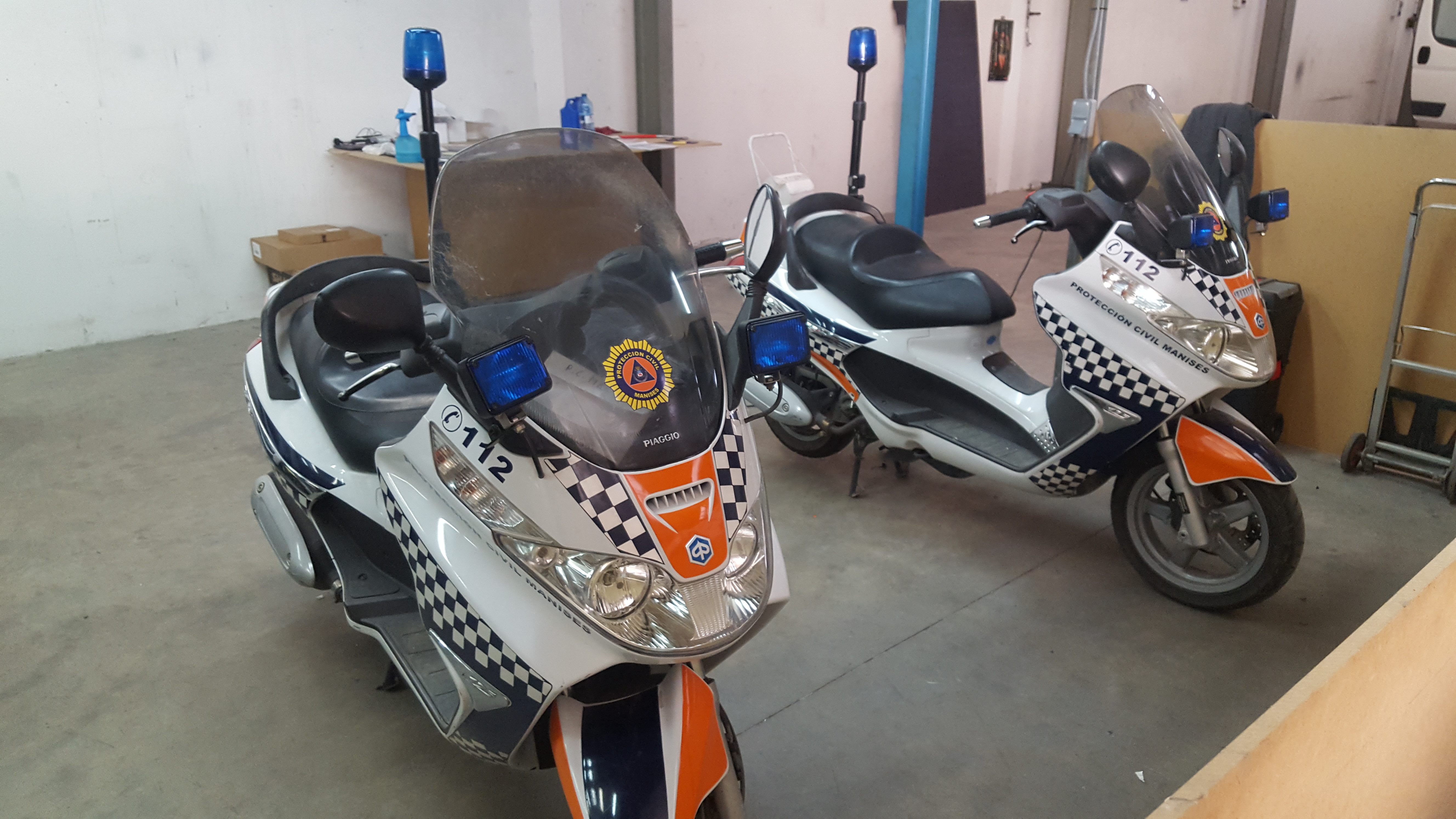 En ABUC hemos quitado los vinilos de estas dos motocicletas las cuales estaba utilizando la Policia local de Manises, para colocarles el diseño en color ámbar propio de la Protección Civil.