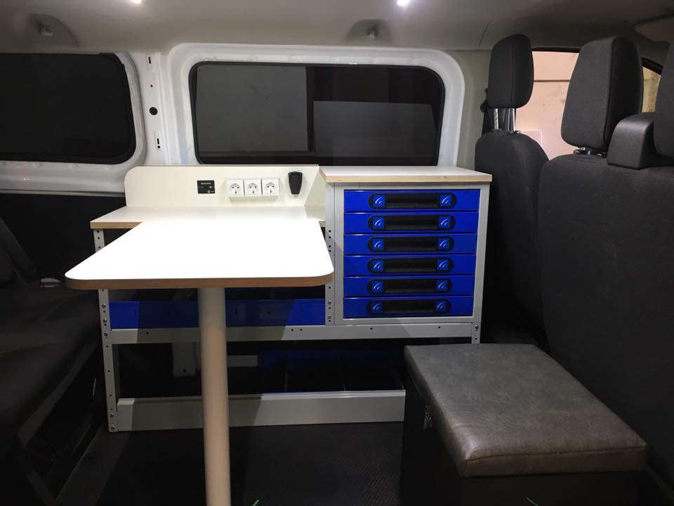 Añadimos a tu vehículo industrial una infinidad de combinaciones con la que podrás tener tu oficina portátil totalmente equipada.