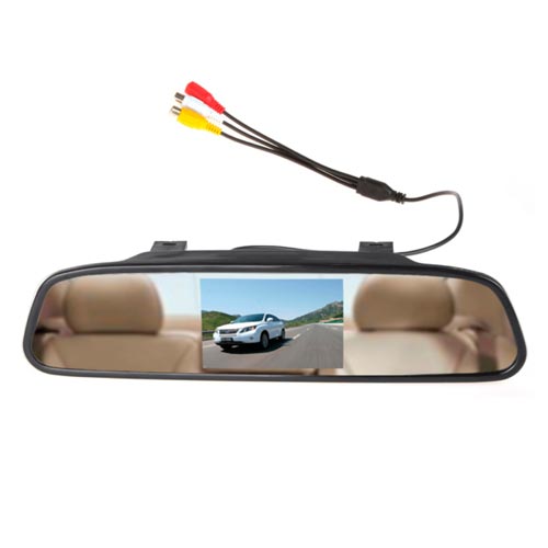 Pasemos ahora a hablar de la opción que incorpora cámara, como la opción anterior esta está compuesto por 4 sensores de proximidad colocados en el paragolpes trasero, una centralita de control, una pequeña pantalla LED, pero esta vez, añadimos también una cámara en la zona trasera y remplazamos el espejo retrovisor central por uno el cual incorpora una pantalla totalmente funcional la cual reproduce las imágenes captadas en la cámara trasera.